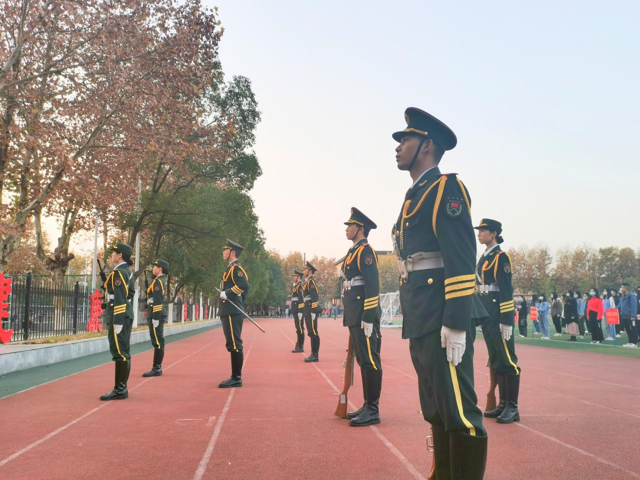 在东校区田径场隆重举行“青春做脊梁,战疫勇担当”主题升国旗仪式。学院党委书记吴智勇、院党委副书记马小佼、学工办主任张云雾、辅导员李敏和学院全体在校学生参加了活动。