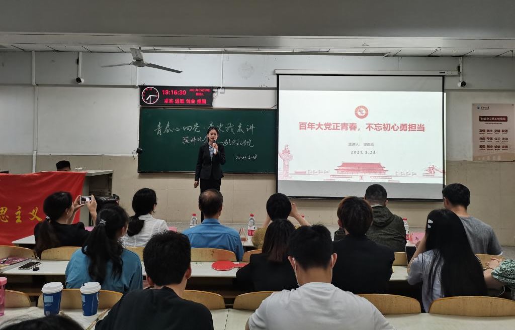 在12教104室举行“青春心向党 党史我来讲”主题演讲比赛决赛。院党委书记吴智勇、党委副书记马小佼,青年博士汤波兰、邓亚中,学公办主任张云雾和辅导员李敏出席比赛。汤波兰,邓亚中,张云雾和李敏担任评委。激烈竞争之后,最终十二号选手董欣楠荣获一等奖。