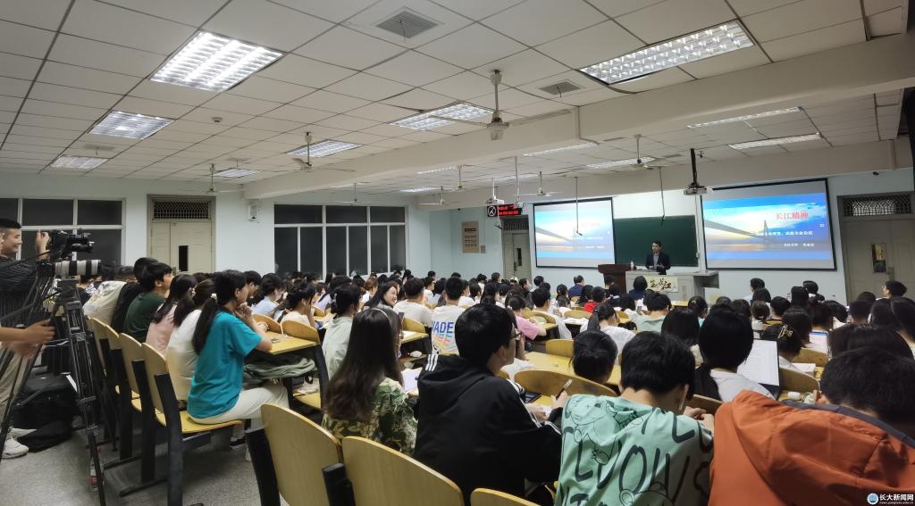 “滚滚长江东逝水,浪花淘尽英雄。”朱业宏通过分享诗词、歌曲向同学们展现了长江精神——广纳百川、润泽万物、推陈出新、百折不回。广纳百川是博大包容,体现在一个“博”字。润泽万物是仁爱利他,体现在一个“爱”字。推陈出新是超越创新,体现在一个“创”字。百折不回是坚韧不拔,体现在一个“韧”字。他勉励同学们树立崇高的理想,努力学习,奉献社会。