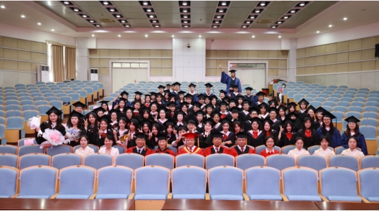 学位授予仪式在庄严的国歌声中拉开帷幕。刘小燕书记宣读学生名单后,硕士研究生、本科生及第二学士学位本科生依次走到台前,向导师代表鞠躬,并由姜院长为他们拨流苏,合影留念。