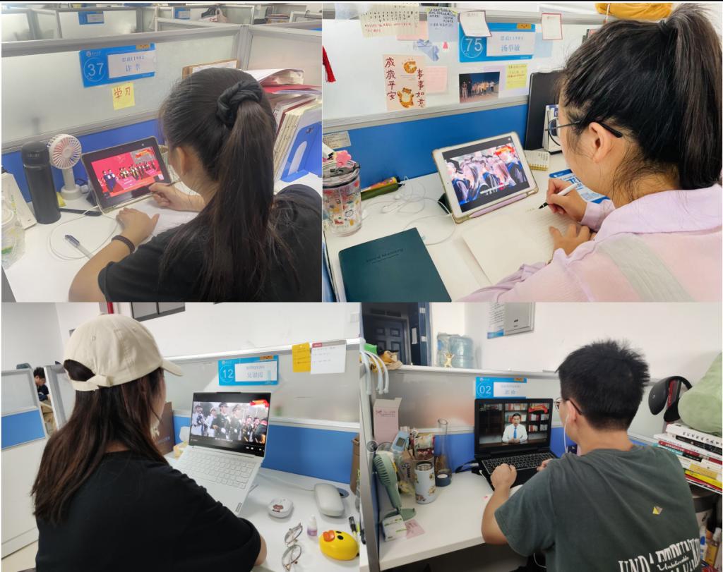 全体学生以线上线下结合的形式,如期观看高校典礼育人微党课展播第一讲。本讲内容以“牢记殷切嘱托,培育时代新人”为主题展开,四所高校党委负责人担任主讲人。