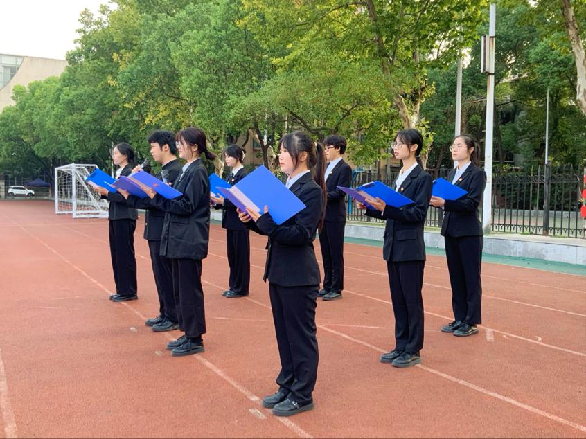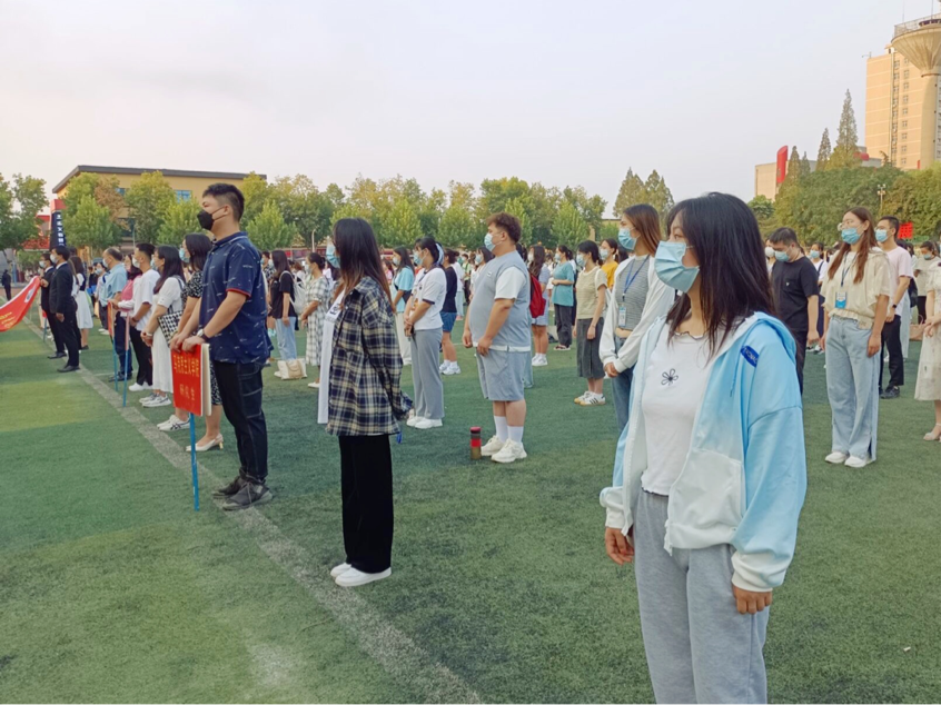 于东校区田径场举行“拥抱新学期,喜迎二十大”主题升旗仪式,学院院长姜学勤、党委书记刘小燕、党委副书记马小佼、副院长涂江波、院长助理李振华、本科生辅导员张云雾、研究生辅导员李敏及全体本研学生到场参加升旗。