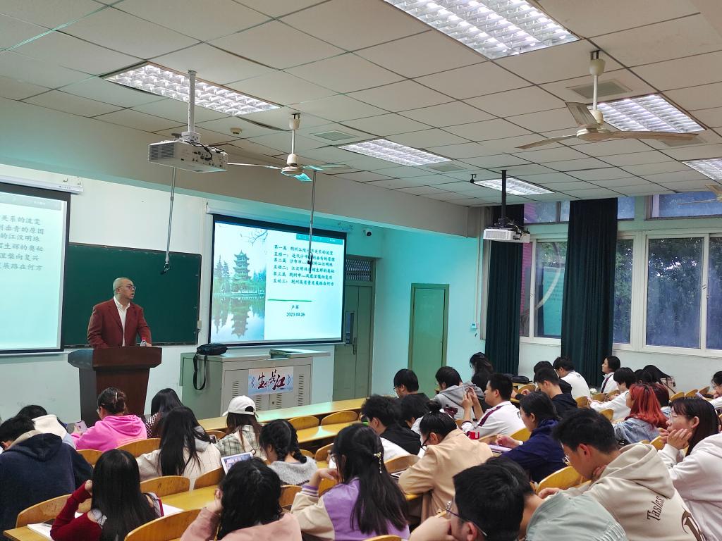 副教授卢军老师担任主讲人,带领长江学子们纵览了荆州市“前世今生”。