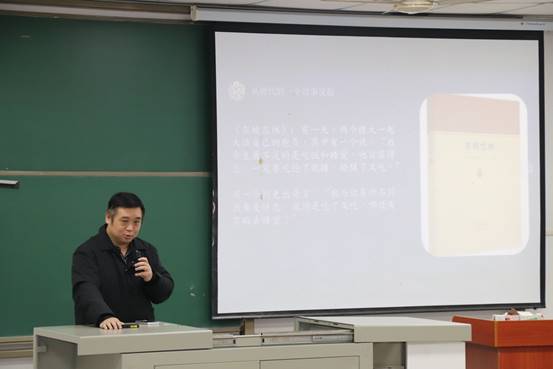 讲到“荆楚之风味”时,徐老师表示荆楚之风味主打一个“厉而不爽”,以咸味、甜味、酸味、辛香味为主。露鸡、烤鹅肉、蒸菜、生姜茶则为荆楚特色风味美食。徐老师的精彩讲授让课堂上同学们的肚子饿了,却也让他们的精神饱了。徐老师运用风趣幽默的语言和丰富的图片向同学们讲述两千多年前楚人的美食美饮,引得台下笑声频频。