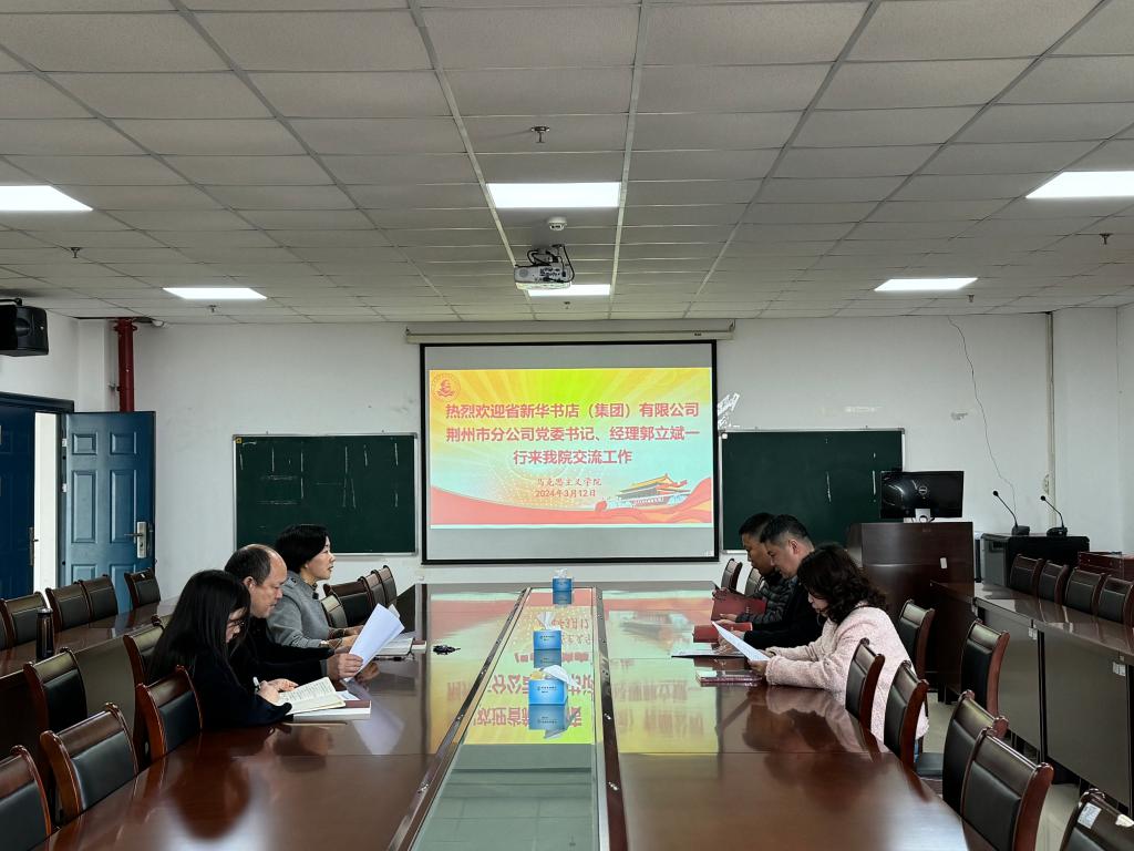 2024年3月12日上午,湖北省新华书店(集团)有限公司荆州分公司党委书记、经理郭立斌,副经理黄艺,集团综合部李书鹏一行3人来学院交流工作。院长姜学勤、党委书记刘小燕、副书记汤慧珍参加交流。
