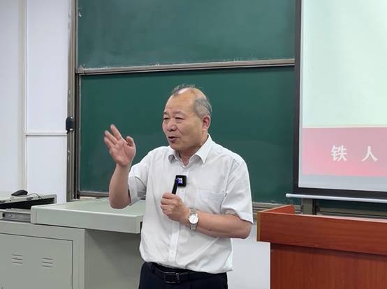 课程最后,郭岗彦表示回望铁人一生,解析其精神密码,给我们最大的启示是:一个人的高贵及成功与否,并不在于他的出身、地位,而在于他的灵魂,即情怀、境界、认知能力等。并用自作诗《铁人赞》勉励长大学子:铁人精神震撼魂魄,洗涤心灵。让我们接过铁人的旗帜,在实现民族复兴的道路上一往无前,接续奋斗。