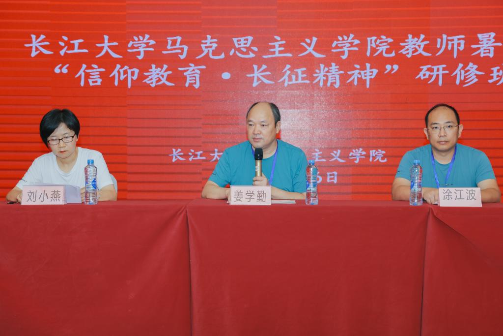 院长姜学勤指出,在长征出发90周年之际,学院组织全体思政课教师开展以“信仰教育·长征精神”为主题的暑期研修活动,就是要让思政课教师在研修中接受红色文化熏陶,弘扬伟大长征精神,讲好新时代“大思政课”。他希望全体教师提高认识与站位,以中华优秀传统文化、革命文化和社会主义先进文化为力量根基,守正创新推动思政课建设内涵式发展;要端正学习态度、提升学习实效,在理论教学、现场教学和情景体验式教育中接受思想启迪和精神洗礼,做到理论与实践相结合,历史与现实相结合;要深学细悟、学以致用,从红色资源中汲取精神动力和奋进力量,强化为党育人、为国育才的责任担当。