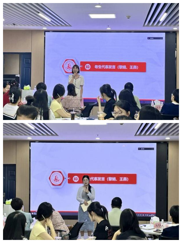 随后的感悟分享环节,2023级学硕黎娟从珍惜时间、提升能力和修炼意志三个方面讲述了自己的读研心得;2023级专硕王燕聚焦明确目标、突出重点、提高效率给出优化研究生学习的意见建议。