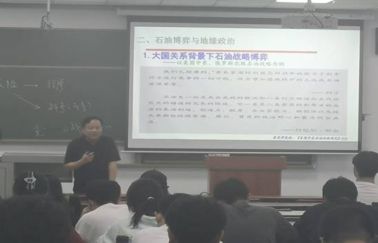 舒先林教授走上讲台,激情开讲第三讲:更好端牢能源的饭碗——兼论中国石油安全的国内外环境。