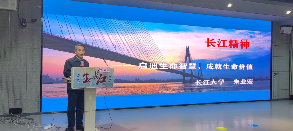 “何谓长江精神?”朱老师认为长江精神寓意着人的精神,博大、仁爱、自新、坚韧,以源远流长、厚重激越之生命长江,启迪我们生存的技能、生活的智慧、生命的价值。朱老师指出人是探索宇宙的钥匙。要掌握生存技能,具备学习探索能力、实践动手能力和组织管理能力,正确处理人与自然的关系。要领悟生活智慧,正确处理五伦关系,要珍惜当下、和睦相处,要换位思考、立己达人,坚持上善若水等关系准则,自觉遵守社会规范,正确处理人与社会的关系。要创造生命价值,塑造本我、完善自我、追求超我,正确处理人与自己的关系。长江是中华民族的摇篮,我们要像长江一样奋勇争先,不悲观、守乐观、求达观,达则兼济天下,穷则独善其身,要学习长江赋予的生命力量,启迪生命智慧,成就生命价值。