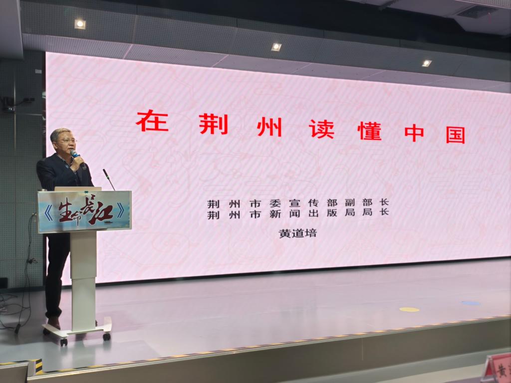(通讯员储康华)2025年3月19日晚,大型思政公选课《生命长江》第十三季第二讲在16教A313教室开讲,荆州市委宣传部副部长、市新闻出版局局长、一级调研员黄道培担任主讲人,从人类文明史的角度,带领同学们走进楚文化,让世界看见楚文化。