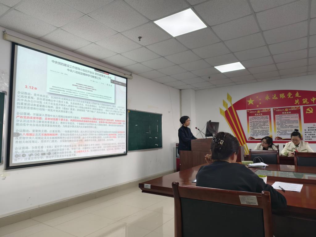 会上,学院党委书记刘小燕领学了习近平总书记关于党政机关习惯过紧日子的重要讲话和重要指示批示精神、习近平总书记关于树立和践行正确政绩观的重要论述、2024年12月9日中共中央政治局会议精神、习近平总书记在中央经济工作会议上的重要讲话精神、习近平总书记考察贵州、云南时的重要讲话精神,传达了第二十八次全国高校党的建设工作会议精神、全国两会精神、2025年全国教育工作会议精神、全省教育大会精神以及第二十八次全省高校党的建设工作会议精神,深入解读了《教育强国建设规划纲要(2024-2035年)》,并就校党委二届六次全体会议、学校2025年工作部署会、校纪委二届五次全会、学校党的建设工作领导小组会议等相关会议精神以及校纪委关于在全校范围内开展《教职工违规打牌和赌博专项整治》、《深入纠治公款旅游问题》等内容进行了集中传达。刘小燕还作了av解说