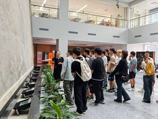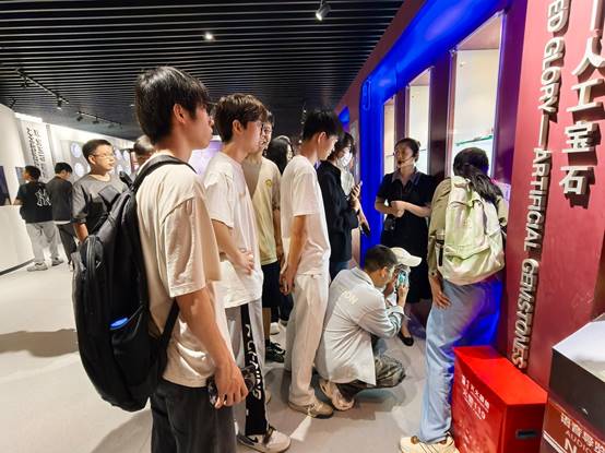 活动伊始,一面气势恢宏的化石幕墙便牢牢吸引住同学们的目光。形态各异的古生物化石镶嵌其中,远古时代的痕迹清晰可见。在博物馆讲解员的引导下,同学们走进地球奥秘展厅。这里陈列着形态各异的矿物晶体和化石标本,通过讲解员生动的讲解,同学们了解到地球的形成与演化过程,认识到长江流域地质变迁与生命发展的紧密联系。