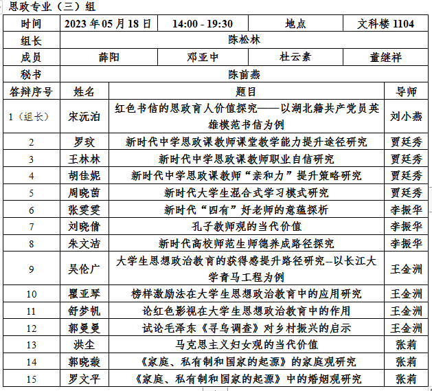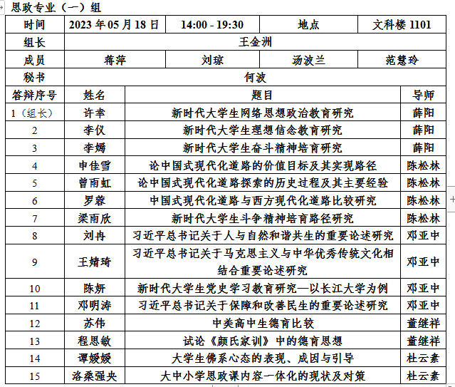 二.答辩分组、时间、地点安排