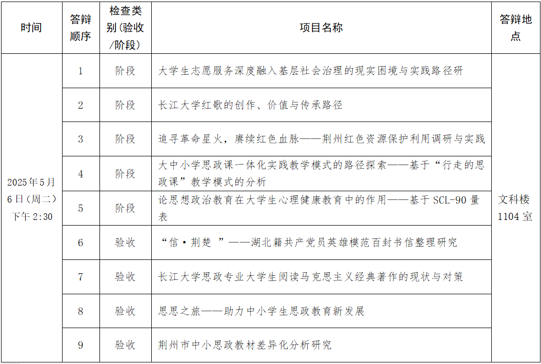 2025年大学生创新创业项目阶段检查及结题验收现场答辩安排如下: