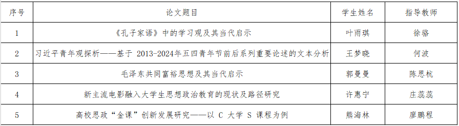 毕业论文(设计)工作管理办法(修订)》(长大校发〔2023〕114号文件)及《关于组织评选2025届校级优秀学士学位论文的通知》,学院组织了2025届校级优秀学士学位论文评审工作。经学院学位评定分委员会集体研究决定,拟推荐叶雨琪、王梦晓、郭曼曼、许惠宁、熊海林等5位同学的学位论文为校级优秀学士学位论文。