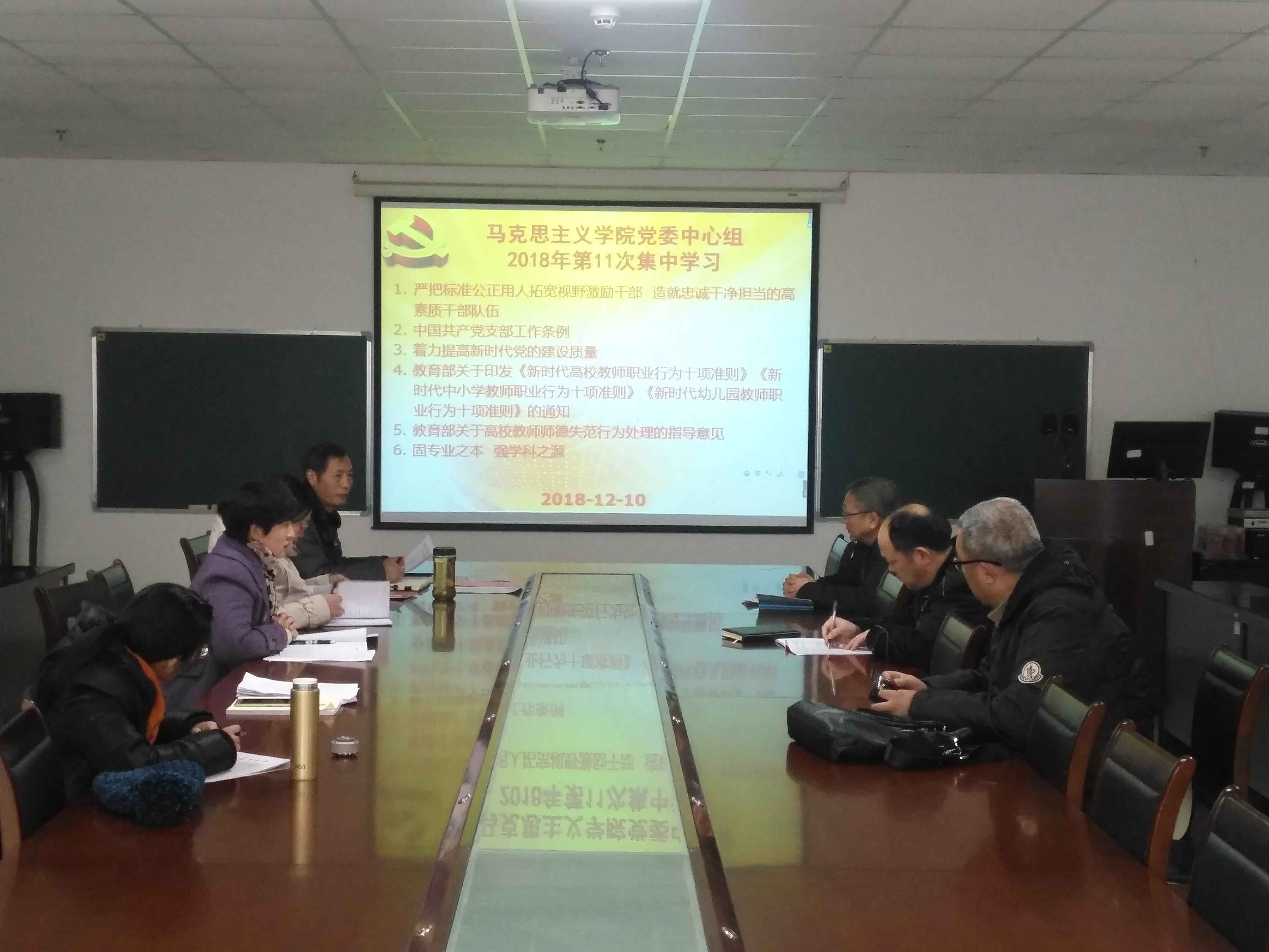 于2018年12月10日在文科楼1104室举行了党委理论学习中心组第十一次集中学习,党委理论中心组成员及各支部书记参加了学习会,会议由党总支书记吴智勇主持。