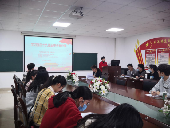 于11月5日在文科楼1104室举组织开展了集中培训。学院党委副书记马小佼为全体入党积极分子、发展对象、党员以及学习小组成员讲了题为《学习党的十九届五中全会公报》的专题党课。