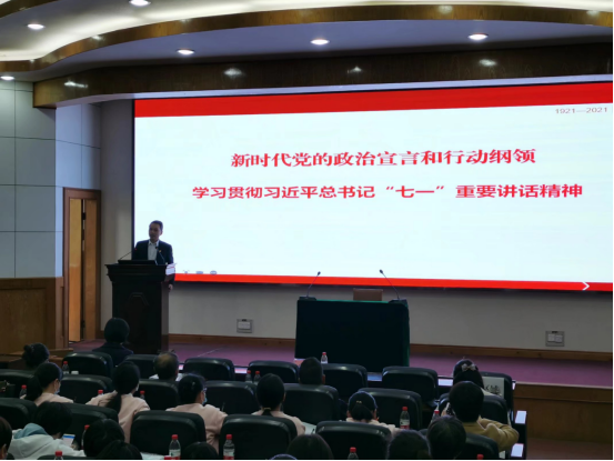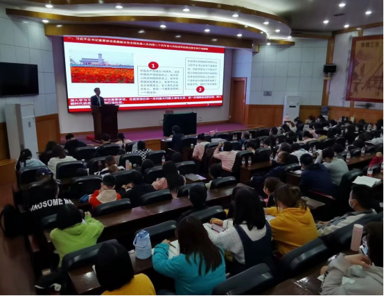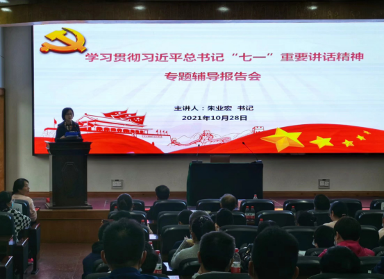 在11教报告厅举行学习贯彻习近平总书记“七一”重要讲话精神专题辅导报告会,邀请校党委书记朱业宏作报告,会议由院党委书记刘小燕主持。
