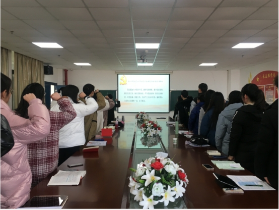 在研究生党支部,宣传委员翟高带领大家重温入党誓词,尹帅、刘鹏、杨鑫三位同志分别带领全体党员集体诵读党章第二章,党支部书记李敏老师引导学生党员重点学习了《中国共产党简史》第七章并结合十九届六中全会精神学习,就贯彻落实学校第二次党代会精神开展了主题研讨。学生党员翟高谈到,党员要学好十九届六中全会精神,从历史中汲取智慧和力量,践行“十个坚持”。支部书记李敏强调,支部党员要自觉主动学、及时跟进学、联系实际学、笃信笃行学,学出成效来。