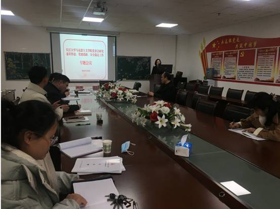 在文科楼1104室召开党委会,专题研究意识形态工作。会议由院党委书记刘小燕主持,学院党委委员、党支部书记、全体行政人员共同参会。