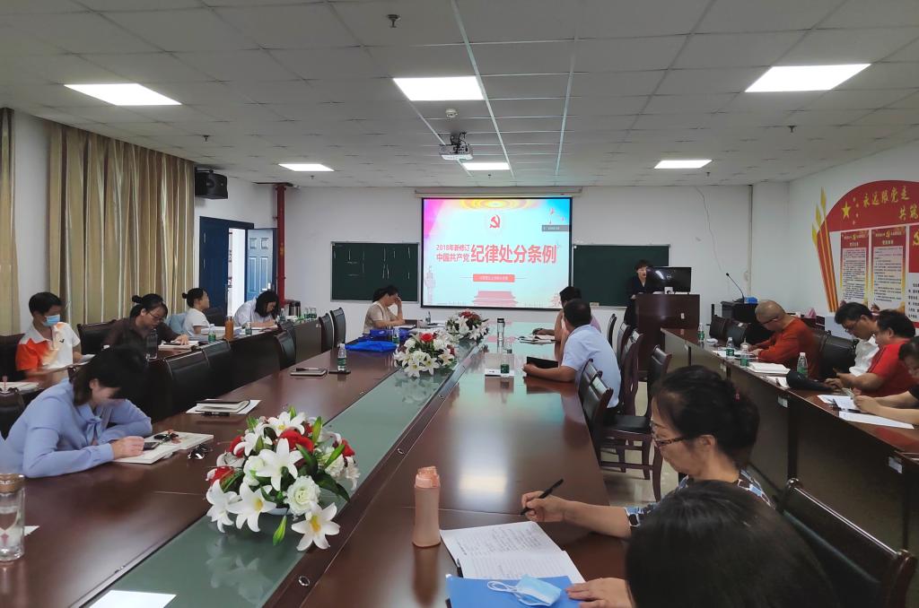 在文科楼1104室举行9月份教职工政治理论学习活动,会议由副院长涂江波主持,全院教师以线上线下相结合的方式参会。