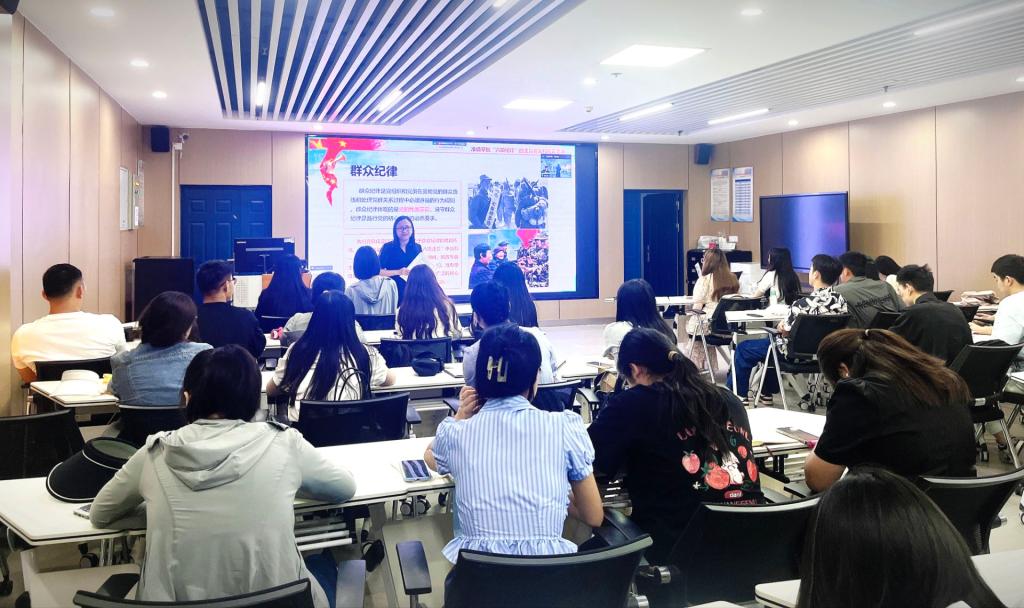 在文科楼1008室开展党纪学习教育专题党课辅导。学院党委副书记兼马克思主义理论研究生党支部书记汤慧珍为全院学生党员及入党积极分子授课。