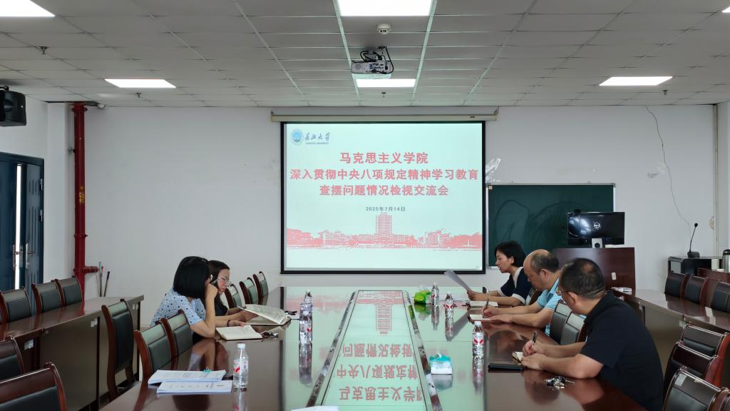 在文科楼1104室召开深入贯彻中央八项规定精神学习教育查摆问题情况检视交流会,深入学习贯彻习近平总书记关于加强作风建设的重要论述以及在中央政治局第二十一次集体学习时的重要讲话精神,对照中央八项规定及其实施细则精神,围绕查摆问题进行检视剖析,进一步提高思想认识,明确整改措施,切实增强学习教育实效。会议由学院党委书记刘小燕主持。