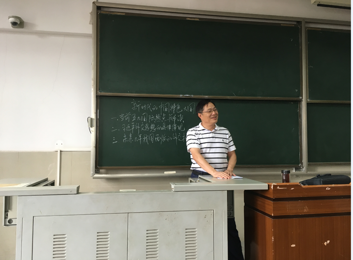 5月26日上午第二大节,李家宝副校长在主教207教室给学生讲《形势与政策》课。李校长对学生说:为了给同学们讲好这堂课,他准备了半个月。同学们都为李校长认真对待课堂教学的态度所感动,教室响起了热烈的掌声。李校长讲授的专题是《新时代的中国特色大国外交》,在上课前几分钟,李校长就在黑板上列出了讲授的内容:一、当前五大国际热点解读;二、习近平外交思想的具体体现;三、未来几年我国面临的外交挑战。李校长给同学们详细解读了以下五个国际热点:1、石油期货市场开张;2、金正恩两度访华;3、西方群殴俄罗斯;4、中美贸易争端;5、巴以冲突。下课时间到了,李校长讲授得还意犹未尽,课堂再次响起了热烈的掌声。李校长表示以后有时间继续跟同学们交流。李校长讲授的内容详实、逻辑紧密;注重联系相关史料;注重价值观念的引导,是一堂生动的思政课。同学们到课全,听课认真,收到了很好的实效。
