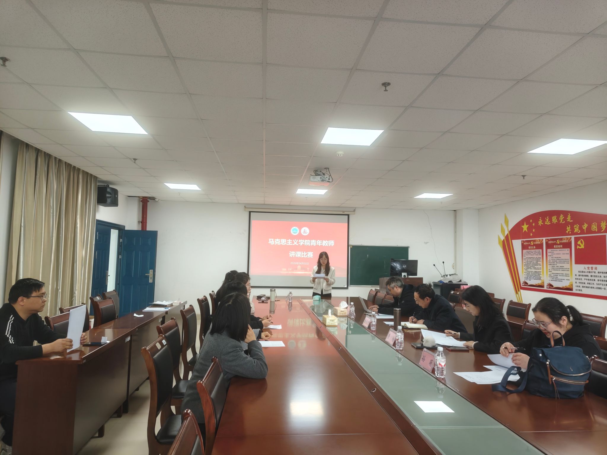 在文科楼1104室成功举办2026年青年教师讲课比赛。此次竞赛以“以赛促教、以赛促学、以赛促改”为核心宗旨,为青年教师搭建了展示教学风采、分享教学心得、交流教育理念、相互学习共进的优质平台,助力青年教师提升专业素养与教学能力,加快成长步伐,进一步夯实学院教学质量根基。