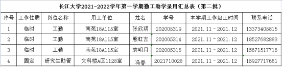 因工作需要,经学生本人申请,学院审核,现将av解说 2021-2022学年第二学期勤工助学拟录用名单(第二批)公示如下:
