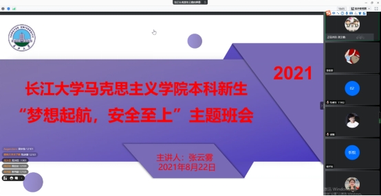 通过腾讯会议开展了 “梦想起航 安全至上”线上主题班会,邀请了2021级全体本科新生、第二学生学位新生及新生家长共同参会。