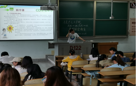 6月24日,思政12002班于13教D126开展暑期安全教育大会。会上,针对学院下发的暑期安全提示和有关学生离校或滞留学校的相关请假手续,班长张圣文作了详细宣讲,提醒同学们要注意暑期安全。