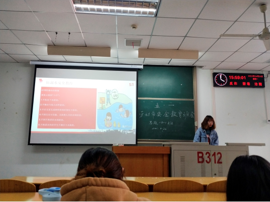 4月27日,第二学士学位本科班级、2018级研究生相继于文科大楼1104组织召开运动安全教育班会, 副书记马小佼参与了班会,除提醒假期外出的同学注意出行安全外,还提醒假期留校学生遵守学校相关规定,按时就寝、注意防火防盗。