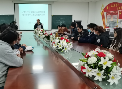 于文科大楼1104室举行了因疫情防控致困学生专项资助、新疆籍家庭经济困难学生专项资助答辩会,学院党委书记吴智勇老师、党委副书记马小佼老师、思政11801班汤波兰老师、班主任兼辅导员张云雾老师和李敏老师担任评委。