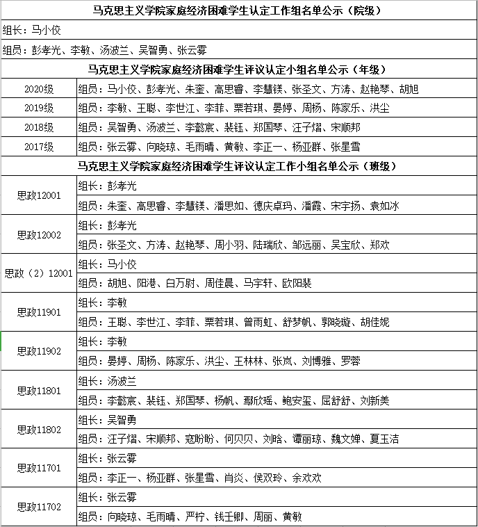 根据av解说 《关于做好2020-2021学年家庭经济困难学生认定工作的通知》,结合学院实际,现将av解说 2020-2021学年家庭经济困难学生认定评议工作组成员名单公示如下: