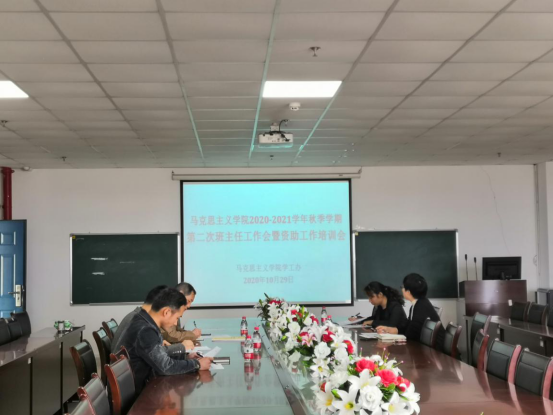 在文科楼1104会议室组织召开了本学期第二次班主任工作会暨资助工作培训会。会议由学院党委副书记马小佼主持,班主任、全体辅导员参会。