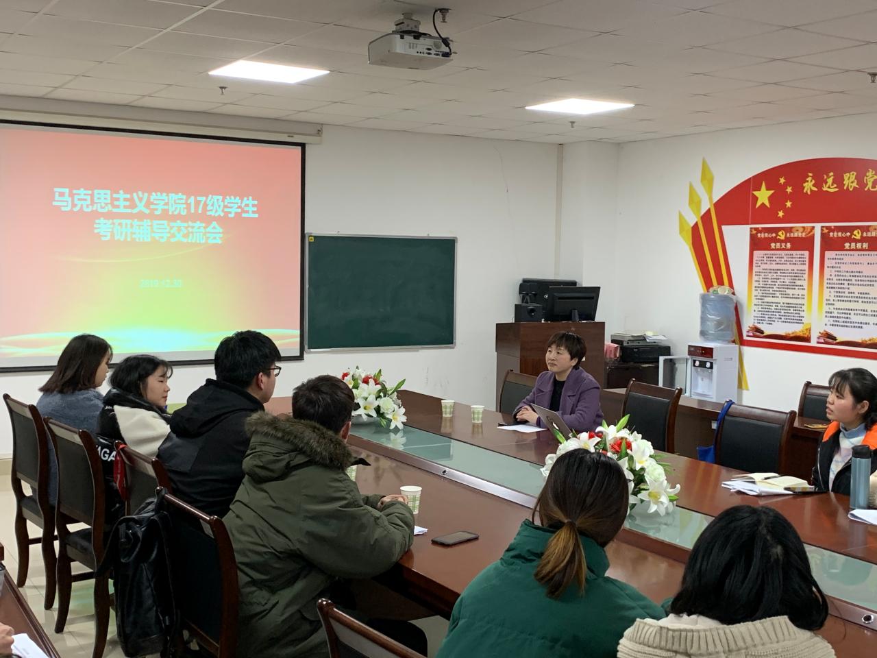 在文科大楼1104会议室,召开了2017级本科生考研辅导交流会,学院党委副书记马小佼,兼职辅导员董思遥,以及2017级全体本科生参加。