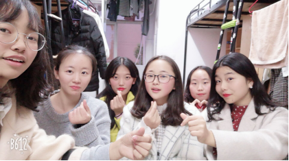 学习上我们互相帮助,宿舍邱诗琪同学为理科生,经常辅助我们的高数,而剩下五位文科生的我们也经常回答她的疑惑。并且邱诗琪同学积极参与星火杯,一直打到半决赛。课堂上我们经常一起做到前排听课,争做优秀的社会主义接班人。