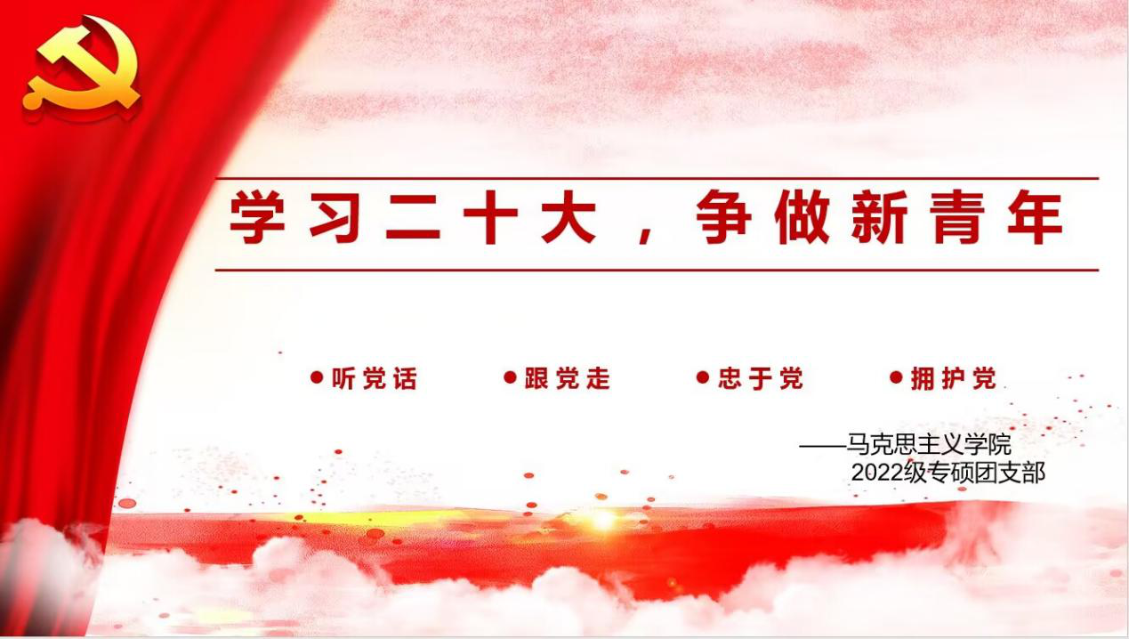 本次主题团会各支部均在线上展开学习。22级两个支部共同学习了党的二十大的主题、议程和意义,进一步了解党的二十大相关内容,强调了青年工作的重要性,表明了青年与时代的深刻关系,使同学们对自身承担的时代责任有了更清晰的认识;21级两个支部紧紧围绕“学习二十大,争做新青年”团会主题,多角度地解读了党的二十大精神,激励同学们为实现党的二十大确立的目标团结一致、努力奋斗;20级支部的团会通过主讲人细致生动地讲解,同学们对理论知识和实践内容有了更加深刻的了解,进一步增强了同学们的责任意识,化精神为动力,努力谱写新时代青年的宏伟篇章;19级两个支部引导同学们学习新思想,把握新动态,在思想上深刻认识党的二十大的重大意义,同时倡导大家促进自身德智体美劳全面发展,以最好的自己来创造美好未来;研究生支部激励全体团员向模范学习,感悟永远听党话、跟党走的初心使命,积极投身于建设中国特色社会主义的伟大事业之中。同时,各支部均开展了学习宣传贯彻党的二十大精神全省大中小学生线上答题活动,此次活动提高了同学们的理论知识水平,教育引导同学们积极拥护党的路线方针政策,做有理想、有道德、有文化、有纪律的四有青年。
