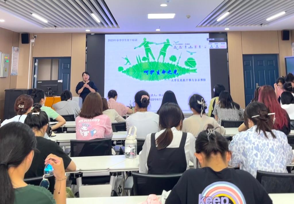 在文科楼1108室开展了学生骨干心理健康教育培训讲座。学院心理专干张云雾主讲,全体本、研学生心理骨干150余人以线上线下相结合的方式参会。