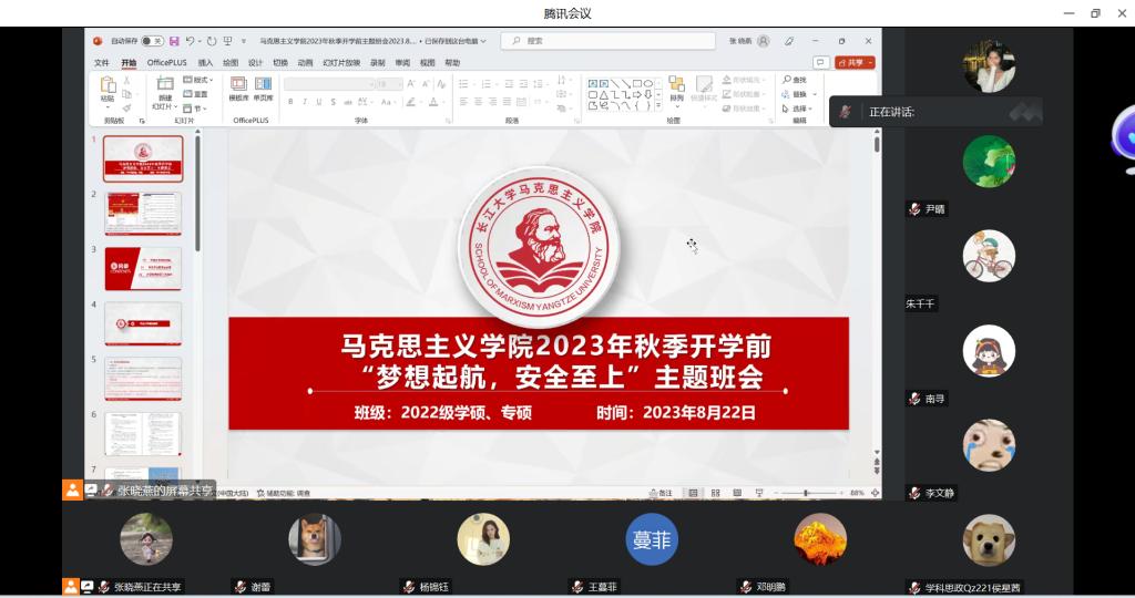 于8月21日至8月23日组织本、研各班级开展了“梦想起航,安全至上”线上主题班会。辅导员张云雾、李敏,班主任马小佼、张莉、徐先荣、何波参与其中。