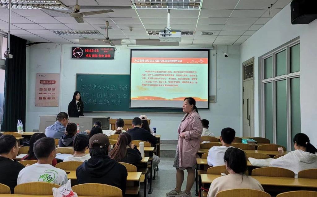 合并组建20周年暨高水平大学建设主题大会上的主题报告精神。思政(2)12301支部邀请班主任郭辉老师做理论宣讲,讲述如何将理论学习学到实处并学以致用。郭老师强调,同学们不能空谈文字,只有扎根实践,脚踏实地,把精神理论化作实际行动,才是学习的根本所在。思政12302班班主任李敏在团会中寄语青年学子,要敢担大任、勇担重任,不怕苦、敢吃苦,不负时代、不负韶华,让青春之花绽放在祖国最需要的地方。