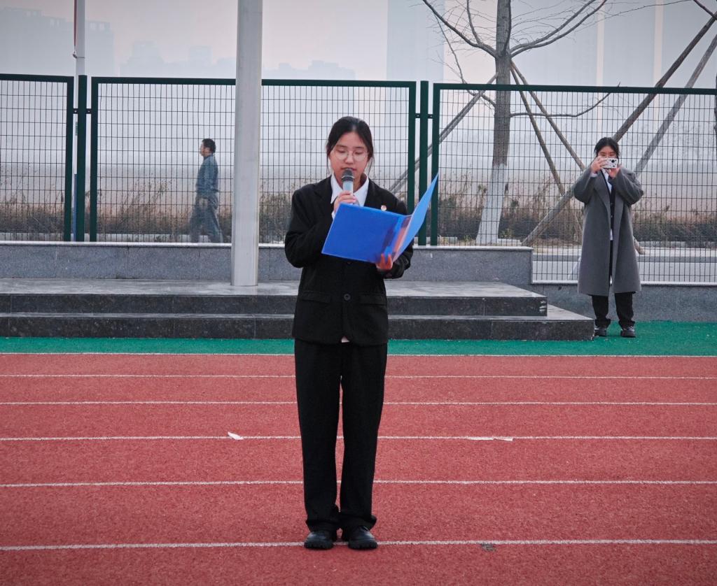 于12月25日早上7点在东校区新田径场举行升旗仪式。学院党委副书记汤慧珍、辅导员张云雾以及全院学生参加仪式。