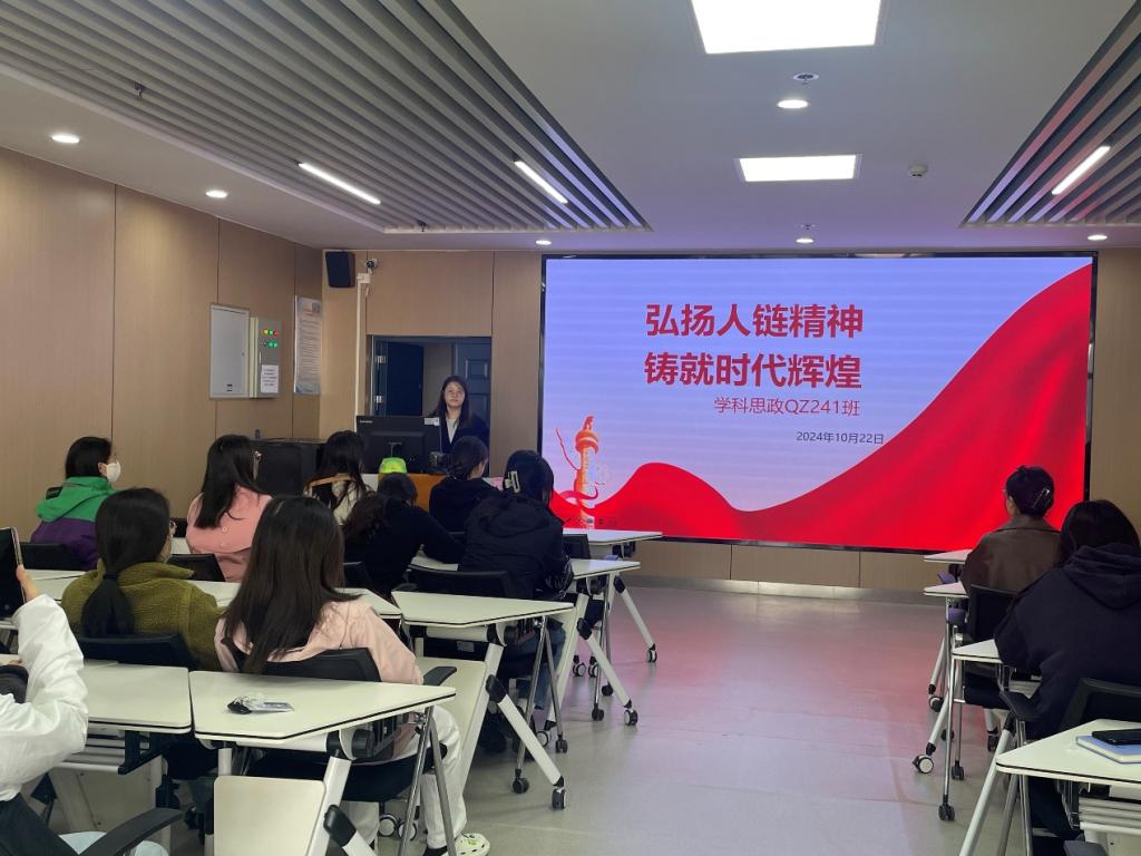 组织开展了“弘扬人链精神 铸就时代辉煌”主题班会。全体班主任、辅导员以及本、研学生参与其中。