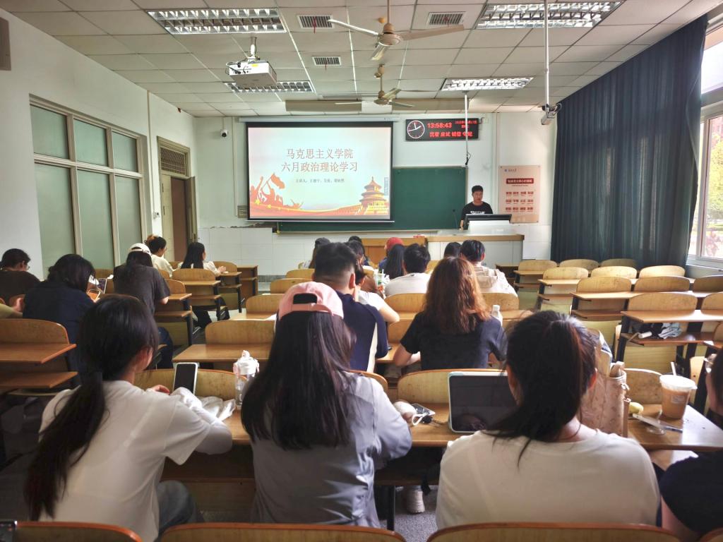研究生政治理论学习在13教D-126教室如期开展。研究生会实践部部长赵梦帆主持学习,2024级全体研究生参加学习。