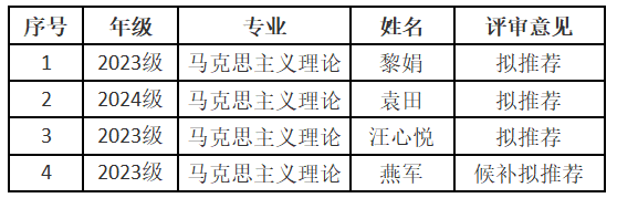 根据《av解说 学生资助资金管理办法(修订)》(长大校发[2025]112号)等文件精神,本着公开、公平、公正、择优的原则,av解说 认真组织了2025年研究生国家奖学金评选工作,经研究生本人申请、资格审查、现场答辩、学院研究生国家奖学金评审委员会审议,现将av解说 2025年研究生国家奖学金拟推荐名单公示如下: