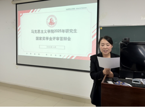 于文科楼1104室举行2025年研究生国家奖学金评审答辩会。学院院长姜学勤、副院长涂江波、副院长张莉、党委副书记竺正海以及部分师生代表共同担任评委。本次答辩会由学工办主任张云雾老师主持。