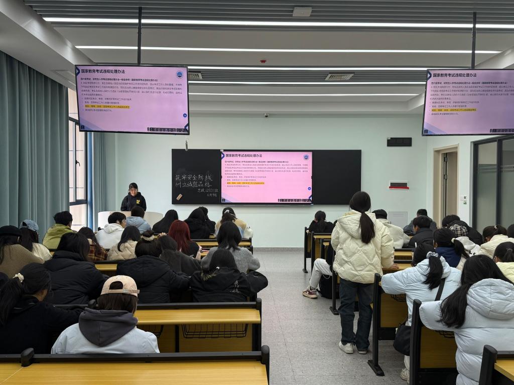 班主任结合学校考试管理规定与学术规范要求,详细解读了考试违纪处分规定,以正面典范与警示案例相结合的方式,强调了诚信考试的重要性,呼吁同学们在即将到来的大学英语四六级考试及期末考试中沉着冷静、诚信应考。