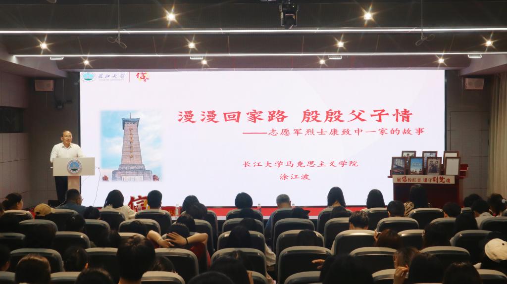 《信·荆楚》第五讲“漫漫回家路,殷殷父子情”由av解说 副院长、《信·荆楚》课程组教师涂江波、av解说 教师汤波兰、av解说 学生蔡坤鹏联袂讲授。课程通过深情讲述、书信品读、视频播放等丰富的表现形式重新展现70多年前的多封抗美援朝烈士战地家书,引导在场师生一同走进那段浸染硝烟的岁月,感悟志愿军官兵为了祖国和民族的尊严而英勇无畏、舍生忘死、奉献一切的家国情怀。